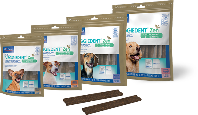 * L-theanine used in VEGGIEDENT® Zen Tartar Control Chews for Dogs comes from Suntheanine®, which contains a pure form of L-theanine. Suntheanine® is a registered trademark of Taiyo International, Inc.